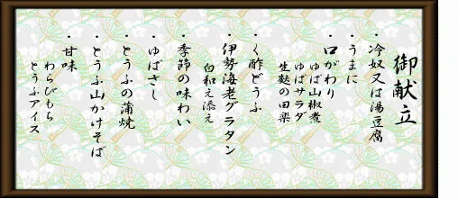 季節の旬を使った御料理を多数ご用意しております。各コース、大変ご満足いただける内容となっておりますので、ぜひお召し上がりください。